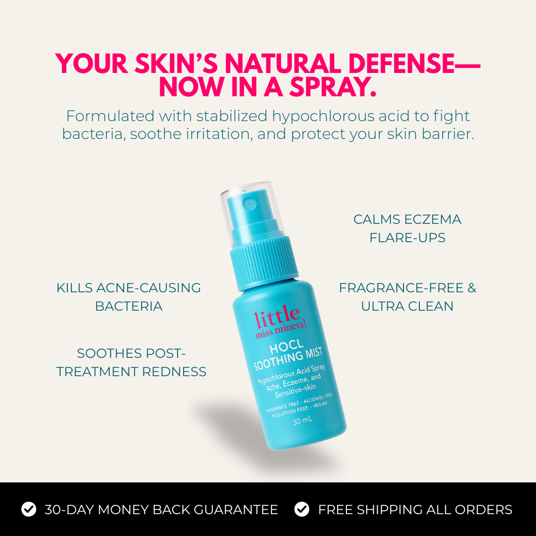 Yes—hypochlorous acid is clinically recognized for its ability to kill bacteria, reduce inflammation, and support natural healing. Whether you’re struggling with cystic acne, stubborn eczema, or mystery irritation, this mist gives your skin the boost it needs to calm down and recover faster.