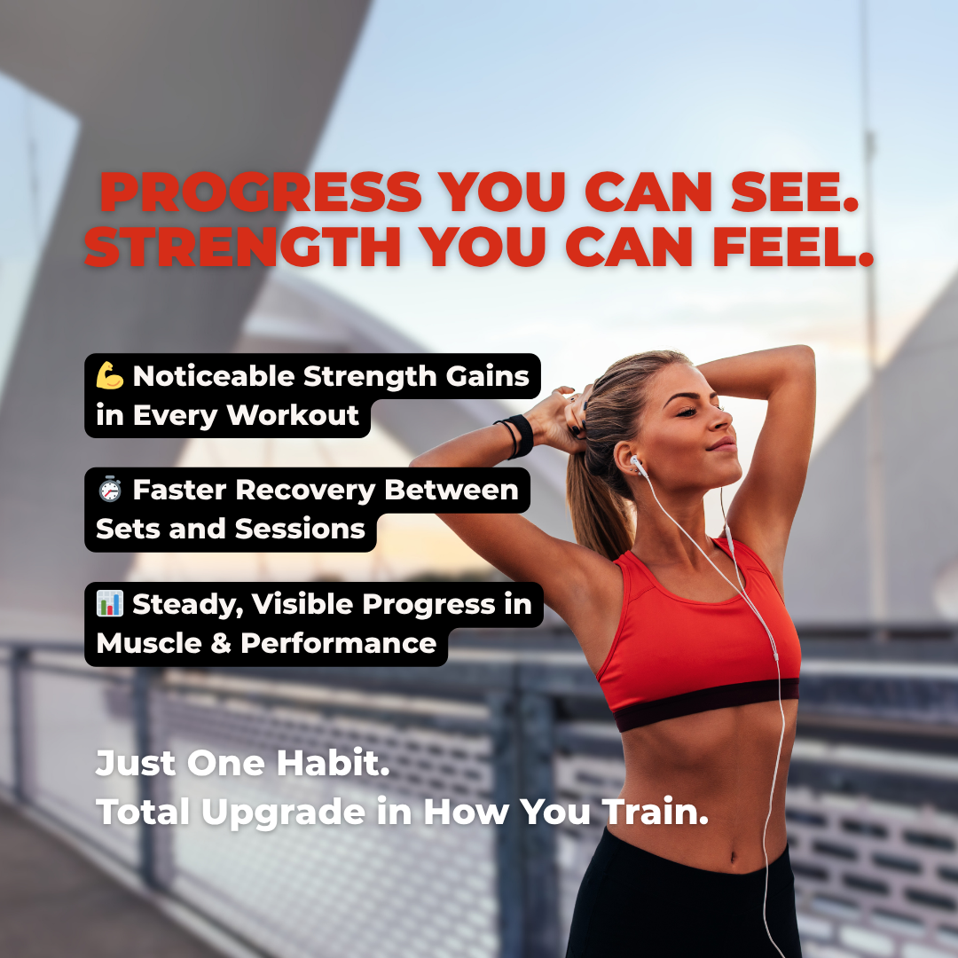 Most people feel more energy in the gym within 1–2 weeks. With regular workouts and daily use, results like improved strength, endurance, and muscle fullness appear in 3–6 weeks.